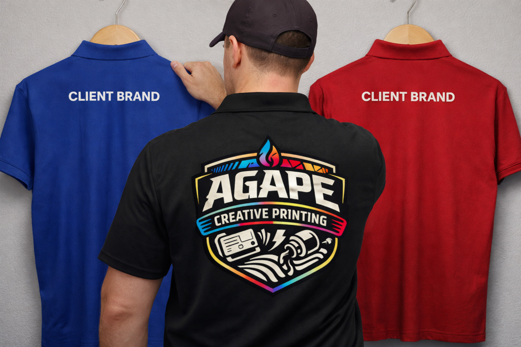 Corporate apparel must withstand frequent wear while maintaining a clean appearance. Business apparel printing at Agape Creative Printing emphasizes durability and consistency, ensuring that garments hold up over time and continue to represent the brand effectively.